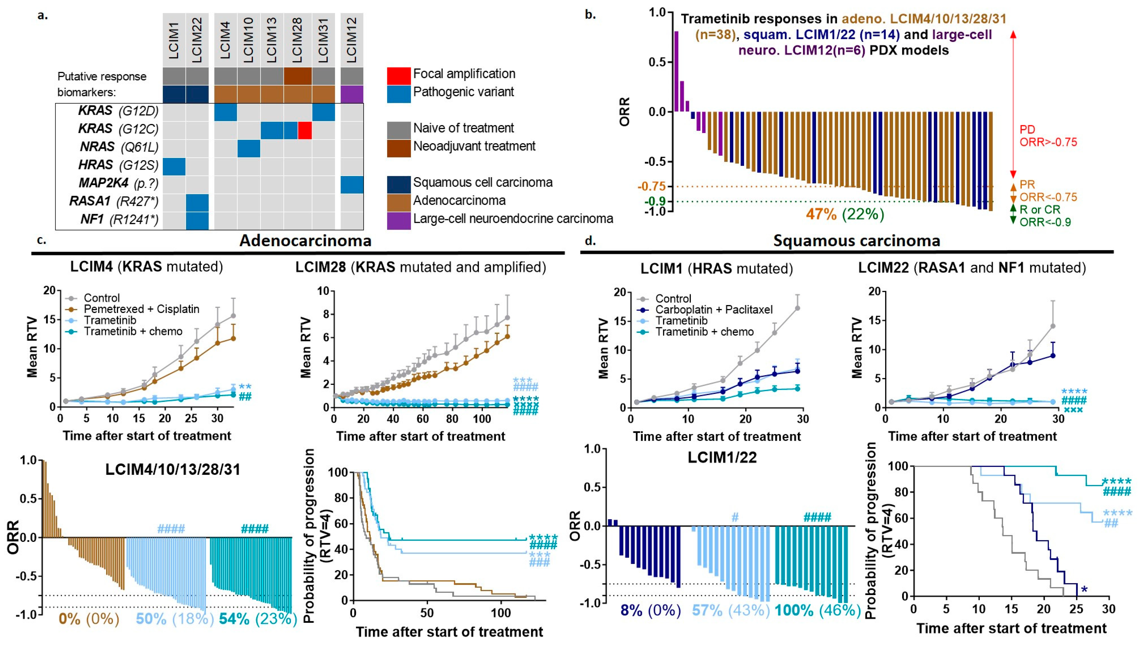 3.4. In Vivo Efficacy of Combining MEK Inhibitor with Chemotherapy in NSCLC PDX Models Showing Alterations in the MAPK Pathway