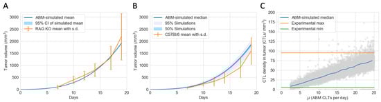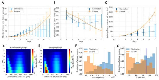 3.4. ABM Reveals Spatial and Phenotypic Heterogeneity Despite Similar Temporal Tumor and Immune Growth Patterns