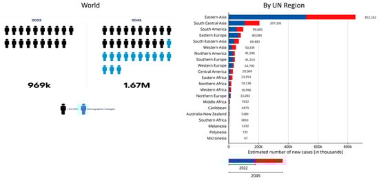 Estimated number of new cases of gastric cancer from 2022 to 2045 in both sexes by UN Region [33].