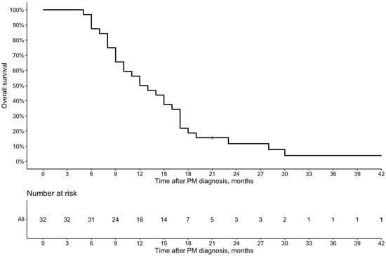 Overall survival from the PM diagnosis of patients who received PIPAC peritoneal metastases.