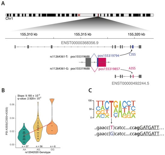 3.1. Splicing QTL Hints at Underlying Gene Regulation