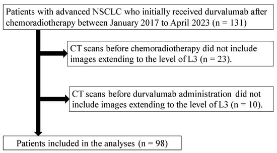Chicago/Turabian StyleKuno, Haruka, Naoya Nishioka, Tadaaki Yamada, Yusuke Kunimatsu, Akihiro Yoshimura, Soichi Hirai, Shun Futamura, Taiki Masui, Masashi Egami, Yusuke Chihara, and et al. 2024. "The Significance of Longitudinal Psoas Muscle Loss in Predicting the Maintenance Efficacy of Durvalumab Treatment Following Concurrent Chemoradiotherapy in Patients with Non-Small Cell Lung Cancer: A Retrospective Study" Cancers 16, no. 17: 3037. https://doi.org/10.3390/cancers16173037