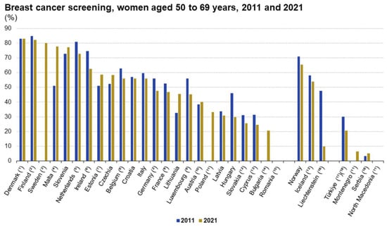 - Sterpetti, A.V.; Gabriele, R.; Iannone, I.; Dimarzo, L.; Borrelli, V. National organized screening programs for breast, colorectal, and cervical cancer reduce socioeconomic disparities, but it is not enough. Cancer 2024, 130, 2395–2397. [Google Scholar] [CrossRef]
