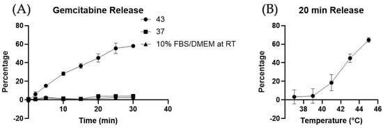 2.3. Gemcitabine-Loaded Thermosensitive Liposome Manufacturing and Release