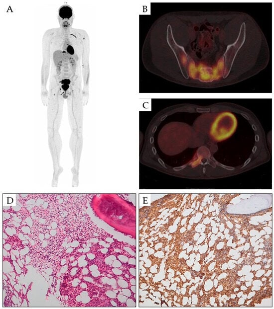 - Robak, P.; Jesionek-Kupnicka, D.; Kupnicki, P.; Polliack, A.; Robak, T. Multifocal osteolytic lesions in hairy cell leukemia-the importance of PET/CT in diagnosis and assessment. Ann. Hematol. 2021, 100, 1641–1645. [Google Scholar] [CrossRef]