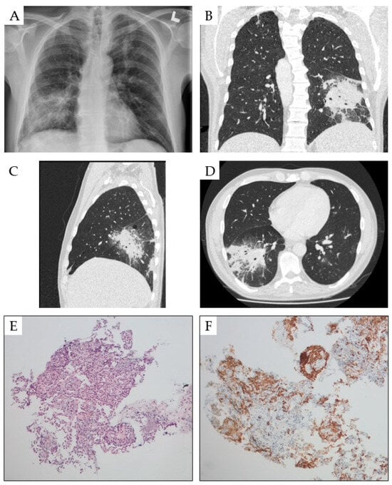 - Uzunhan, Y.; Cadranel, J.; Boissel, N.; Gardin, C.; Arnulf, B.; Bergeron, A. Lung involvement in lymphoid and lympho-plasmocytic proliferations (except lymphomas). Rev. Mal. Respir. 2010, 27, 599–610. [Google Scholar] [CrossRef]