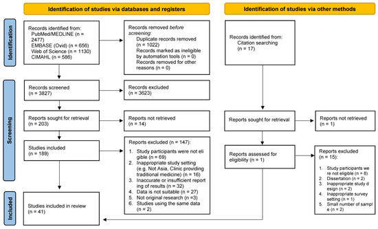 The inclusion and exclusion criteria listed in the research protocol formed the basis for the construction of search strategies. PubMed, EMBASE, Web of Science, and CINAHL were systematically searched to identify eligible articles published from inception to January 2023 using the MeSH/Emtree terms “cancer/neoplasm”, “complementary therapies”, and “traditional medicine”. Additionally, the reference lists of included studies were manually searched in Google Scholar to identify additional studies. The list of Asian countries was compiled from the classification criteria from the United Nations report [36]. The entire search string for each database is available in the Supplementary Materials (see online Supplementary Table S1).
