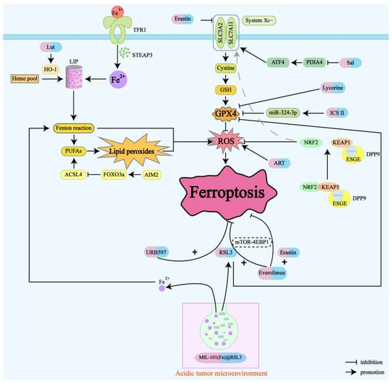 Ferroptosis is a kind of programmed cell death mode driven by three mechanisms: iron metabolism abnormality, lipid peroxide accumulation, and antioxidant system imbalance (Figure 1).