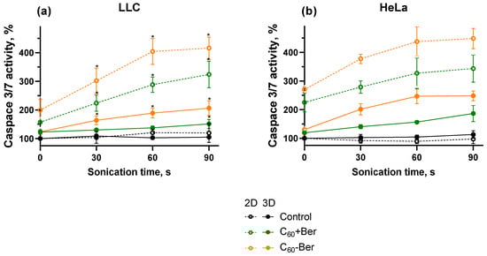 From 2D to 3D In Vitro World: Sonodynamically-Induced Prooxidant Proapoptotic Effects of C60-Berberine Nanocomplex on Cancer Cells