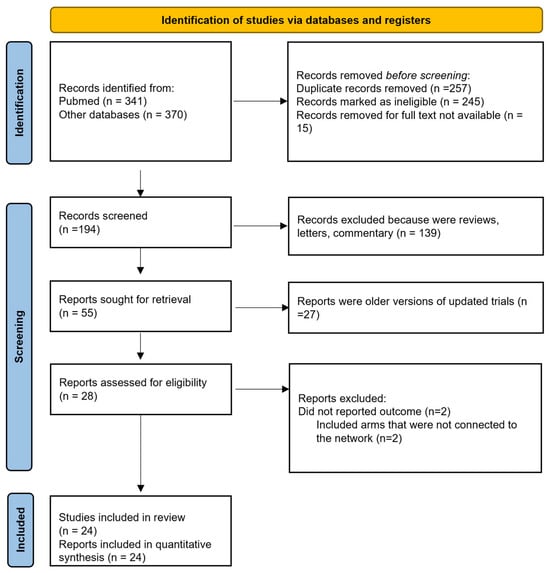 This study was conducted according to the established guidelines outlined in the PRISMA (Preferred Reporting Items for Systematic Reviews and Meta-Analyses) 2020 and the standards set forth in the PRISMA NMA statement.