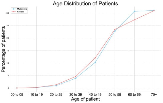 Figure 1 illustrates the distribution of patients by age, highlighting that the disease predominantly affects the elderly. However, the percentage of patients aged 0–49 is 22.41%.