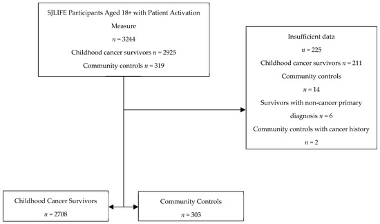 - Howell, C.R.; Bjornard, K.L.; Ness, K.K.; Alberts, N.; Armstrong, G.T.; Bhakta, N.; Brinkman, T.; Caron, E.; Chemaitilly, W.; Green, D.M.; et al. Cohort Profile: The St. Jude Lifetime Cohort Study (SJLIFE) for paediatric cancer survivors. Int. J. Epidemiol. 2020, 50, 39–49. [Google Scholar] [CrossRef] [PubMed]