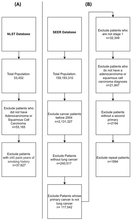 Study Selection Criteria. (A)—selection criteria for the NLST database. (B)—selection criteria for the SEER database.