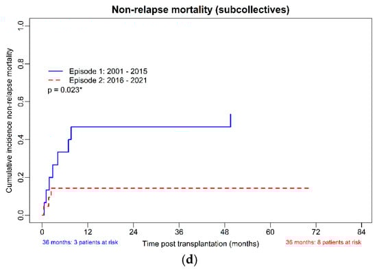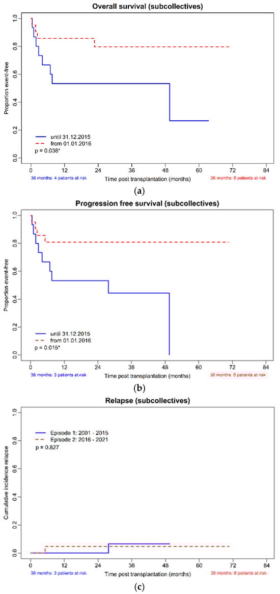 3.4. Transplant Outcome—Entire Cohort and Comparison of the Two Subcollectives