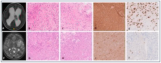 - Chiang, J.; Bagchi, A.; Li, X.; Dhanda, S.K.; Huang, J.; Pinto, S.N.; Sioson, E.; Dalton, J.; Tatevossian, R.G.; Jia, S.; et al. High-grade glioma in infants and young children is histologically, molecularly, and clinically diverse: Results from the SJYC07 trial and institutional experience. Neuro Oncol. 2024, 26, 178–190. [Google Scholar] [CrossRef]