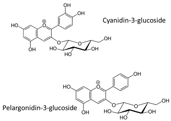 Anthocyanins (ANTs, Figure 9) belong to flavonoids and are known as they determine the colours of fruits and flowers (from pink to blue) in several plants. They exhibit different therapeutic effects including cardioprotective, neuroprotective, and anti-inflammatory. Moreover, they are strong antioxidants, able to reduce the lipid peroxidation process and ROS generation, thus mitigating their negative effects on the oral mucosa environment [141].