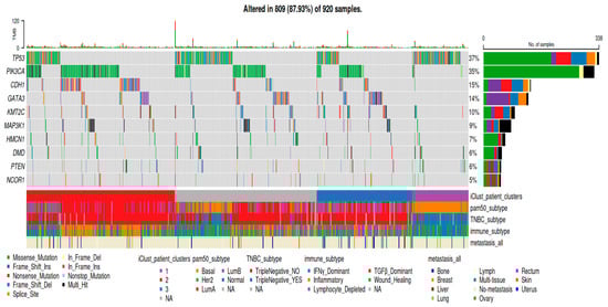 - Cerami, E.; Gao, J.; Dogrusoz, U.; Gross, B.E.; Sumer, S.O.; Aksoy, B.A.; Jacobsen, A.; Byrne, C.J.; Heuer, M.L.; Larsson, E.; et al. The cBio Cancer Genomics Portal: An Open Platform for Exploring Multidimensional Cancer Genomics Data. Cancer Discov. 2012, 2, 401–404. [Google Scholar] [CrossRef]