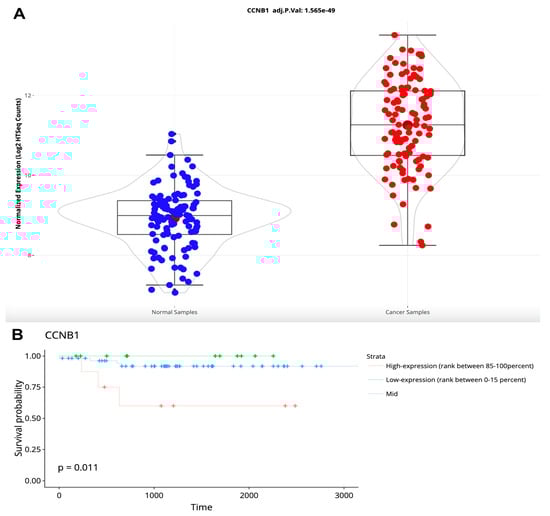 - Aljohani, A.I.; Toss, M.S.; Green, A.R.; Rakha, E.A. The Clinical Significance of Cyclin B1 (CCNB1) in Invasive Breast Cancer with Emphasis on Its Contribution to Lymphovascular Invasion Development. Breast Cancer Res. Treat. 2023, 198, 423–435. [Google Scholar] [CrossRef] [PubMed]