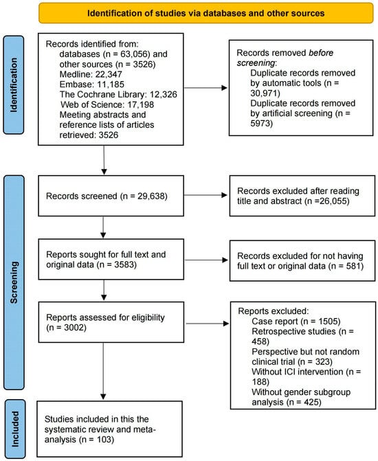Zhong, X.; Sun, J.; Zeng, N.; Xiong, Y.; An, Y.; Wang, S.; Xia, Q. The Effect of Sex on the Therapeutic Efficiency of Immune Checkpoint Inhibitors: A Systematic Review and Meta-Analysis Based on Randomized Controlled Trials. Cancers 2024, 16, 382. https://doi.org/10.3390/cancers16020382
