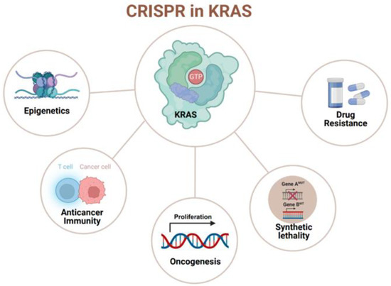 The application of CRISPR technology to basic and translational cancer research in KRAS-driven cancers. (created with BioRender.com, accessed on 29 December 2023).