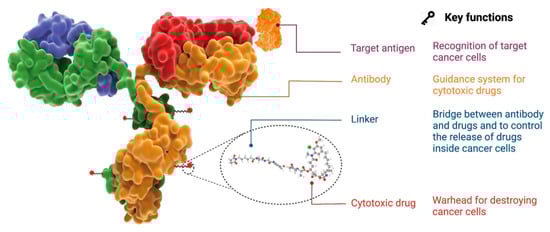 - Fu, Z.; Li, S.; Han, S.; Shi, C.; Zhang, Y. Antibody Drug Conjugate: The “Biological Missile” for Targeted Cancer Therapy. Signal Transduct. Target. Ther. 2022, 7, 93. [Google Scholar] [CrossRef] [PubMed]