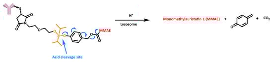 - Wang, Y.; Fan, S.; Xiao, D.; Xie, F.; Li, W.; Zhong, W.; Zhou, X. Novel Silyl Ether-Based Acid-Cleavable Antibody-MMAE Conjugates with Appropriate Stability and Efficacy. Cancers 2019, 11, 957. [Google Scholar] [CrossRef]