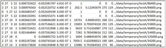 An example of a CSV file written during prediction. Each column represents the following: the predicted class (C1), the top three latent vector indexes (C2–C4), the difference value in the latent vectors (C5), the validity of the dimension-reduced latent vectors (C6), the encoder error (C7), the number of colors (C8), the detected polygonal area size (C9), the area ratio of the classified polygon and all the detected polygons (C10), the x and y coordinates of the detected polygon’s center (C11–C12), and the path of the input image (C13).