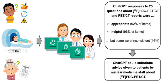 - Rogasch, J.M.; Metzger, G.; Preisler, M.; Galler, M.; Thiele, F.; Brenner, W.; Feldhaus, F.; Wetz, C.; Amthauer, H.; Furth, C. ChatGPT: Can you prepare my patients for [18F] FDG PET/CT and explain my reports? J. Nucl. Med. 2023, 64, 1876–1879. [Google Scholar] [CrossRef]