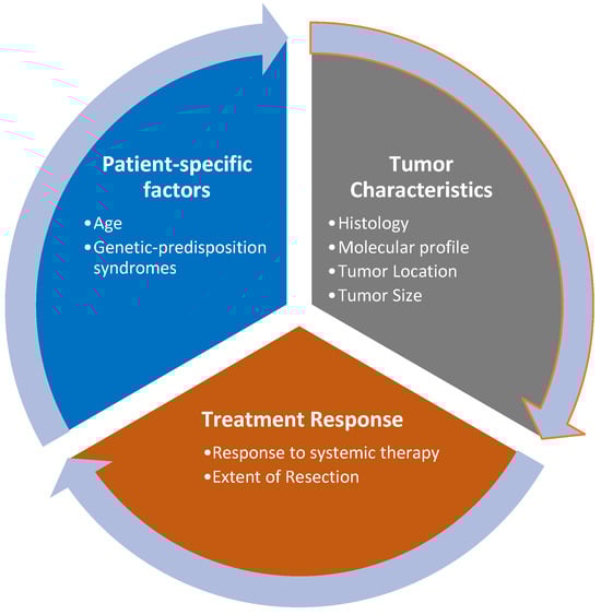 Several tumor-specific factors can influence outcomes, such as the histology and molecular profile. Certain tumor types and their genetic mutations may influence radiation sensitivity and resistance. Molecular profiling helps in identifying tumors that may respond better or worse to radiation. In addition, tumor location and size can often aid in determining adequate radiation doses, such as for rhabdomyosarcomas. Tumors in proximity to critical structures may require more precise targeting with intensity modulated proton therapy (IMPT) to reduce damage to surrounding healthy organs.