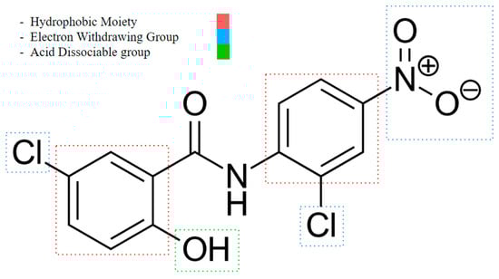 Niclosamide’s functional group characteristics required it to act as an uncoupler, noting its hydrophobic moiety, electron-withdrawing group, and acid-dissociable group.