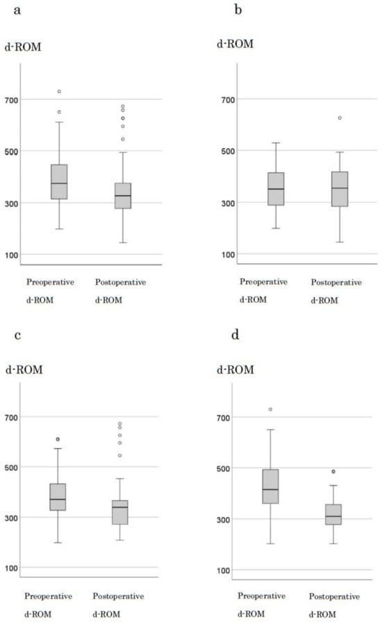 We measured the d-ROM and BAP levels before and one month after surgery using blood samples collected during regular examinations.