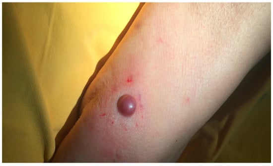 A nodular pink lesion located on the forearm. Courtesy of Prof. Caterina Longo.