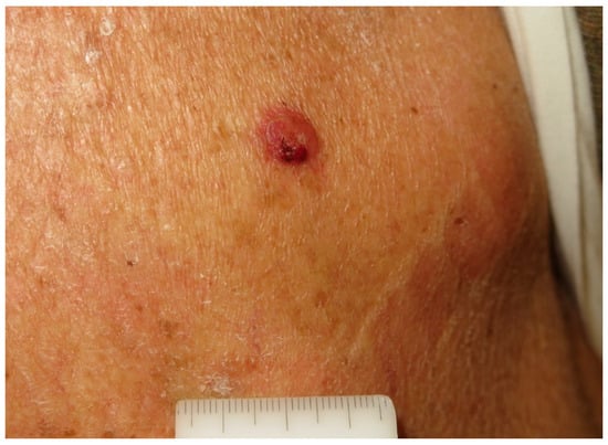 - Jalilian, C.; Chamberlain, A.J.; Haskett, M.; Rosendahl, C.; Goh, M.; Beck, H.; Keir, J.; Varghese, P.; Mar, A.; Hosking, S.; et al. Clinical and dermoscopic characteristics of Merkel cell carcinoma. Br. J. Dermatol. 2013, 169, 294–297. [Google Scholar] [CrossRef]