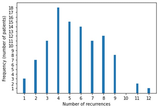 Distribution of recurrences in 102 patients.