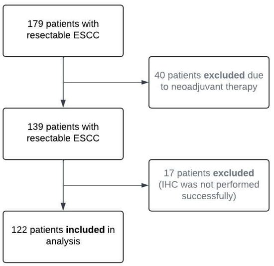 Patients who underwent upfront resection of ESCC between 1991 and 2011 at the Medical University of Vienna were identified from a prospectively maintained database. Patients with distant metastasis at the time of diagnosis or history of any other malignant disease were excluded. This study was approved by the Ethics Committee of the Medical University of Vienna, Borschkegasse 8b/E06, 1090 Vienna, reference number 1350/2015, according to the Declaration of Helsinki.