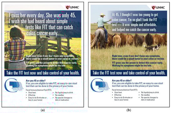 Educational flyers tailored toward rural residents: (a) a flyer image for female participants; (b) a flyer image for male participants.