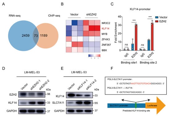 3.4. EZH2 Promotes SLC7A11 Expression by Repressing KLF14