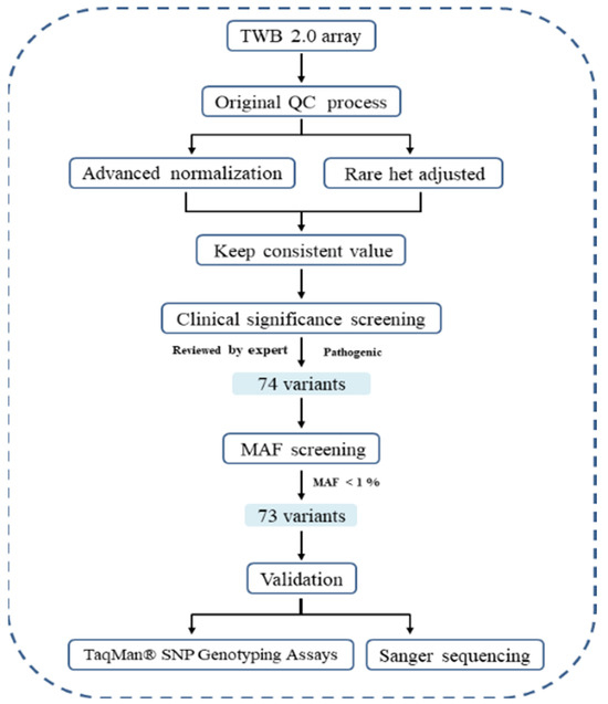 - Sun, T.H.; Shao, Y.J.; Mao, C.L.; Hung, M.N.; Lo, Y.Y.; Ko, T.M.; Hsiao, T.H. A Novel Quality-Control Procedure to Improve the Accuracy of Rare Variant Calling in SNP Arrays. Front. Genet. 2021, 12, 736390. [Google Scholar] [CrossRef]