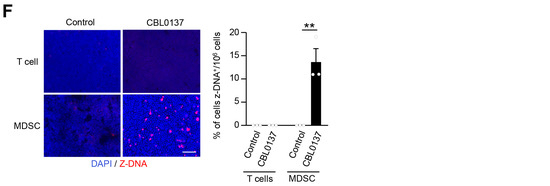 3.6. CBL0137 HAI Targets a Specific Subclass of MDSCs via Z-DNA Induction