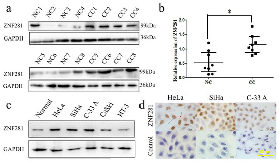 ZNF281 Facilitates the Invasion of Cervical Cancer Cell Both In Vivo and In Vitro †