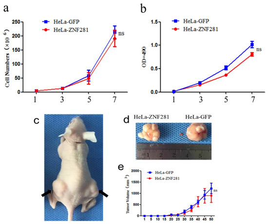 3.3. Effect of ZNF281 Overexpression in HeLa Cells Proliferation or Tumor Size