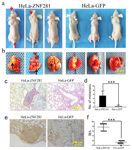 3.5. Effect of ZNF281 Overexpression on Lung Metastasis in Nude Mice