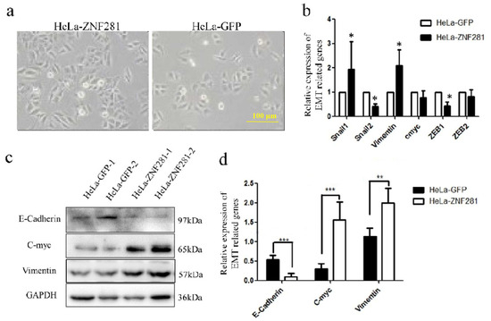 3.6. Effect of ZNF281 in Expression of EMT-Related Genes