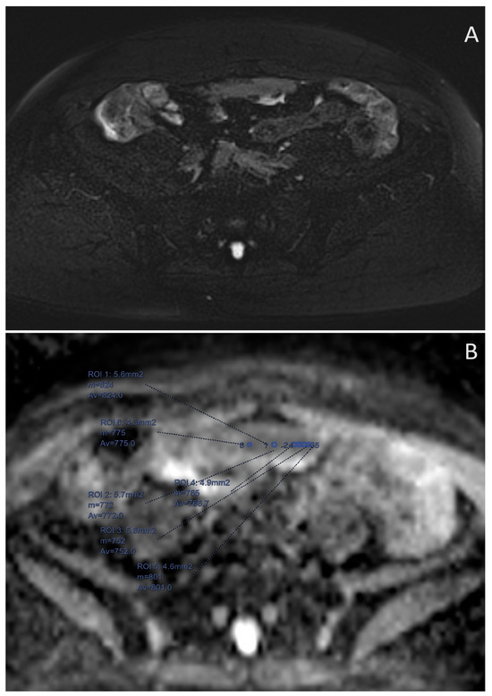 - Mukuda, N.; Fujii, S.; Inoue, C.; Fukunaga, T.; Tanabe, Y.; Itamochi, H.; Ogawa, T. Apparent diffusion coefficient (ADC) measurement in ovarian tumor: Effect of region-of-interest methods on ADC values and diagnostic ability. J. Magn. Reson. Imaging 2016, 43, 720–725. [Google Scholar] [CrossRef]