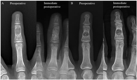 Preoperatively, anteroposterior (AP), lateral, and oblique plain radiographs of the affected hand were obtained. Postoperatively, during the follow-up period, these same radiographs were taken.
