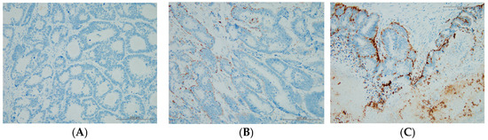 ADP expression was categorized as either positive or negative. Previously defined criteria indicated that ADP expression was positive when neoplastic cells exhibited granular and/or globular cytoplasmic expression [13,15,16,18]. We counted the percentage of ADP-positive carcinoma cells to identify a cut-off value, which was determined by the median value.