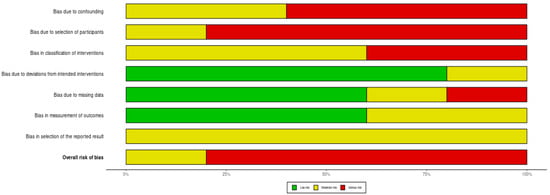 - Sterne, J.A.; Hernán, M.A.; Reeves, B.C.; Savović, J.; Berkman, N.D.; Viswanathan, M.; Henry, D.; Altman, D.G.; Ansari, M.T.; Boutron, I.; et al. ROBINS-I: A tool for assessing risk of bias in non-randomised studies of interventions. BMJ 2016, 355, i4919. [Google Scholar] [CrossRef]