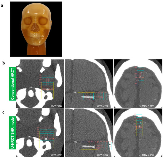 - Ohara, A.; Machida, H.; Shiga, H.; Yamamura, W.; Yokoyama, K. Improved image quality of temporal bone CT with an ultrahigh-resolution CT scanner: Clinical pilot studies. Jpn. J. Radiol. 2020, 38, 878–883. [Google Scholar] [CrossRef] [PubMed]