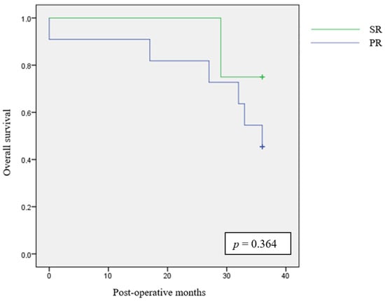 The 3-year follow-up results are summarized in Table 5. We could extend a 3-year follow up to eight patients in the SR group and to 16 patients in the PR group. No significant differences were found between the two groups for metastasis rate (p = 1) and local recurrence rate (p = 0.385). No significant differences were also found for overall survival after 3 years (p = 0.122).