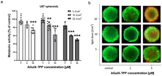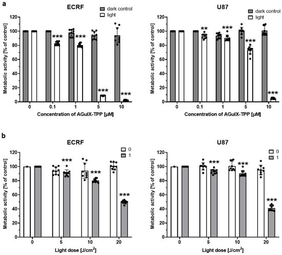 3.2. Photodynamic Activity of AGuIX-TPP in Endothelial and Glioblastoma Cells In Vitro